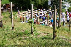Per sviluppare il vigneto, sono stati posati i filari per le piante di uva, realizzati con legno di castagno locale.